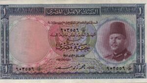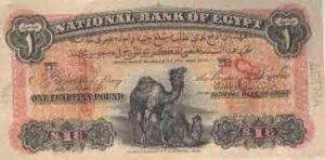 أصدر البنك الأهلي المصري أول ورقة نقدية بقيمة جنيه مصري في 3 أبريل عام 1899،و كان تقييم الجنيه المصري عن طريق معايير الذهب المتعارف عليها آنذاك، بحيث كان الجنيه المصري يساوي 7.4375 جراماً من الذهب، واستخدم هذا المعيار ما بين عام 1885 وحتى الحرب العالمية الأولى، وتم ربط الجنيه المصري بـالجنيه الإسترليني بحيث كان الجنيه الإسترليني يساوي 0.975 جنيها مصرياً.