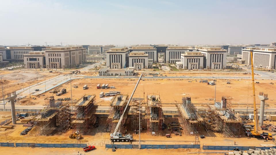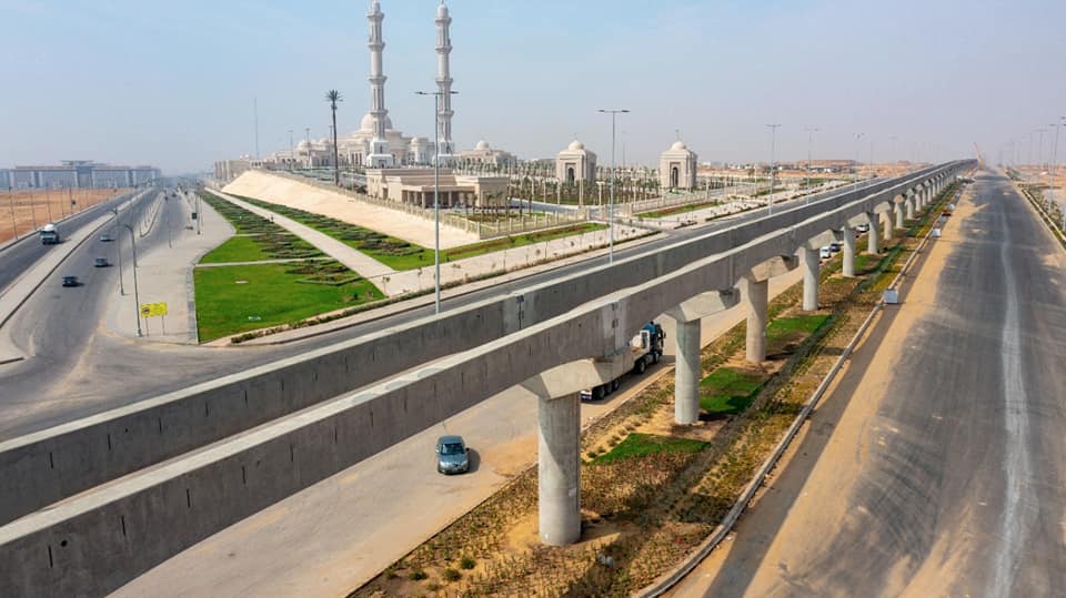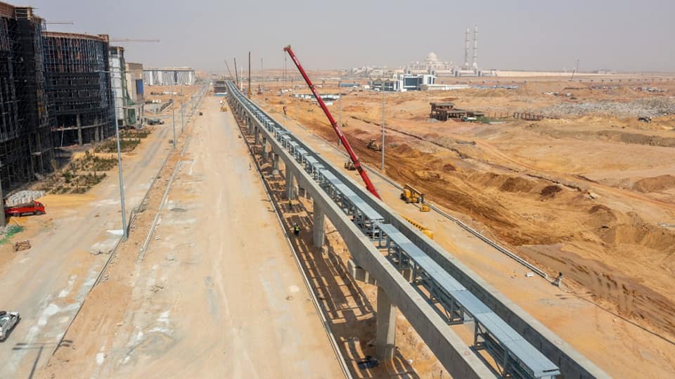 يتواصل العمل على مدار الساعة لتنفيذ أعمال مشروع مونوريل العاصمة الإدارية الجديدة