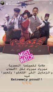 ونشر “آسر ياسين” صورة من بوستر الفيلم عبر خاصية استورى “إنستجرام” معلقًا: “علامة للسينما المصرية، مبروك مبروك، لكل الأصحاب والزمايل اللى اشتغلوا وتعبوا فيه، أنا فخور بكم جدا”.