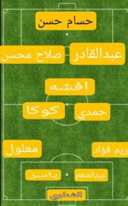الشناوي _ عبد المنعم _ ياسر _كريم فؤاد _معلول _ حمدي فتحي _ كوكا _افشة_عبد القادر _صلاح محسن _ حسام حسن