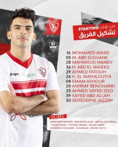 عواد _ عبد الغني _الونش _ حسام عبد المجيد _ احمد فتوح _ حمزه المثلوثي _ أمام عاشور _ أشرف بن شرقي _ زيزو _ سيد عبد العال _ سيف الدين الجزيري .