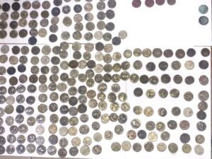 وأضاف الأستاذ محمد عتمان، أن المضبوطات تضمنت تمثال من البرونز للإلهة أفروديت من العصر الروماني، و عدد 1752 قطعة أثرية منها 1722 عملة من الفضة ومعدن البيلون، والبرونز من العصر البطلمي وعصر الأباطرة نيرون، وهادريان، وأنطونيوس بيوس والتي تنتمي لدار سك الإسكندرية، و 20 مثقال لوزن العملة من البرونز بأحجام وأوزان مختلفة، و 6 عملات من الدنانير الذهبية والدراهم الفضية والتي كتب على هامشها رساله التوحيد وجزء من سورة التوبة، وقوالب لسك العملة من العصور الإسلامية المختلفة مكتوب عليها بالخط الغائر وأخرى من العصر الروماني محفور عليها عبارات باللغة اليونانية، بالإضافة إلى عملة من معدن أصفر اللون عليها صورة الامبراطورة جوليا دومنا زوجة الأمبراطور سبتيموس سفيروس نهاية القرن الثانى بداية القرن الثالث الميلادى، وعملة من البرونز من العصر البيزنطي عليها رأس امبراطور غير واضح المعالم.