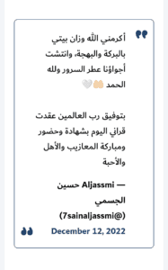 في هذا الإطار أعلن مدير أعمال الجسمي السيد ميار عباس عن ذلك عبر منشور الكتروني حيث كتب: “أخي ورفيق دربي الغالي حسين الجسمي فرحتك في يوم عقد قرانك فرحة للجميع”.