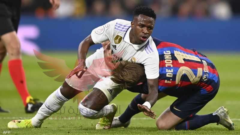 وخلال اللقاء، التحم فينيسيوس بلاعب برشلونة فرينكي دي يونغ، وقام بجره من رقبته، قبل أن يبطحه أرضا، في تصرف غاضب من النجم البرازيلي.