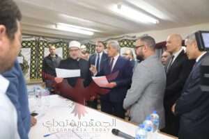 * وزيرا العدل والأوقاف استقبلا الوزير حسن شحاتة أثناء وصوله إلى “اللجنتين”