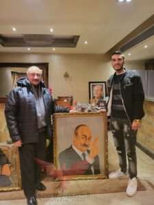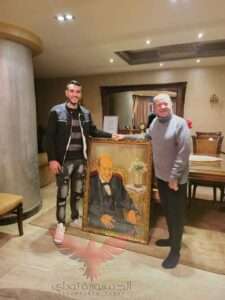 ثم قام بعمل بورتريه للفنان القدير “لطفي لبيب” وسلامه له بمنزلة الخاص حيث اعرب الفنان عن سعاده البالغة وشكره علي هذا العمل الرائع .