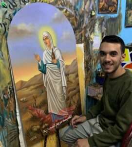 تحدثت جريدة الجمهورية توداي مع الفنان الشاب “مينا ماهر ابراهيم” ، يقيم “مينا” بقرية الرقاقنه مركز جرجا محافظة سوهاج ، يبلغ من العمر 18 عام ويدرس بالمرحلة الثانوية الفنية ، بدأت موهبة من الصغر بمجموعة اقلام وورق حتي تتطورت الي مرسم خاص بيه يجمع فيه كل ما يساعده لتنمية هذه الموهبة .