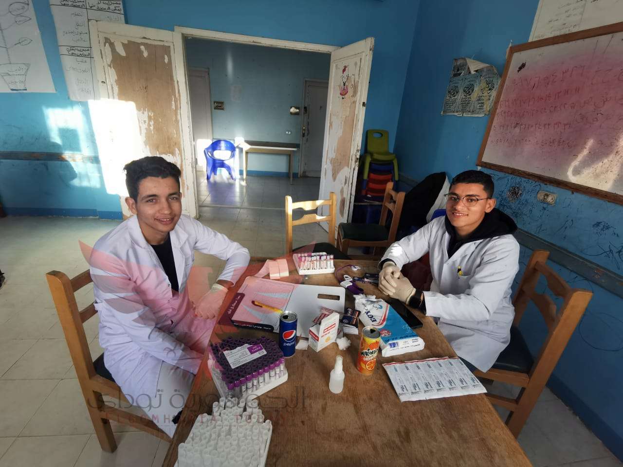 ومجموعة متوطعين من الشباب المتخصصين في التحاليل الطبية وهم.