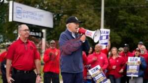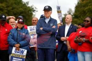 في مشهد تاريخي ….أول رئيس أمريكي ينضم لإضراب عمال اتحاد السيارات تأييداً لمطالبهم.