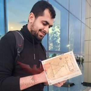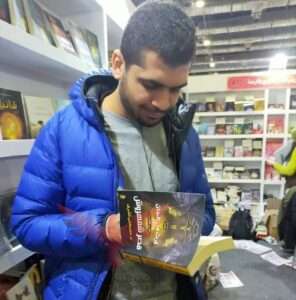 الكاتب “مصطفى أشرف” أثناء توقيعه على رواية «العقيدة» لقُراءه.