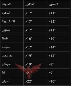 فيما يلي بيان بدرجات الحرارة المتوقعة اليوم: