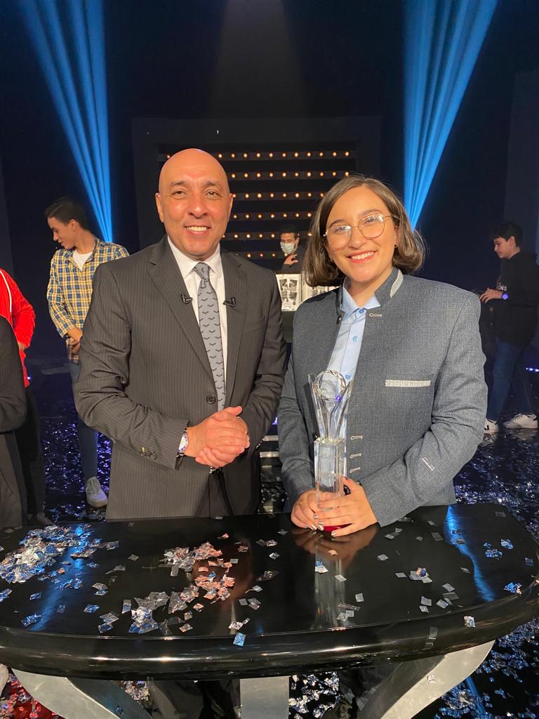 *منذ أن إشتركتُ في أول موسم من برنامج العباقرة وأنا أسعى جاهدة لترك بصمة تحمل إسمي في هذا الكيان العريق، والحمد لله قد كان هذا في هذا الموسم الذي تمكنتُ من نيل الطالبة المثالية لهذا العام، ولم يكُن لدى أي علم قبل الدخول إلى تصوير الحلقة بأنه تم إختياري للفوز بالجائزة، وكانت الأسماء المتداولة أمامي ليس من بينهما إسمي، أحسست بفرحة رائعة وخاصة حينما شعرت بفرح الفرق الأخرى بفوزي فهذا شئ أسعدني كثيرًا.