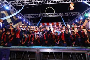 كما تضمن  الحفل توزيع جوائز  على الفائزين من أهالي عزبة خيرالله بمسابقة رسم تجميل المباني المحيطة بمنطقة الجبخانة.