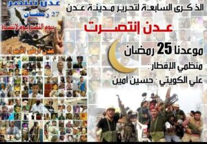في 14 يوليو تمكنت «المقاومة الجنوبية» من السيطرة على مطار عدن وعلى أجزاء من مدينة عدن بعد معارك عنيفة مع المتمردين الحوثيين وقوات الرئيس السابق علي عبد الله صالح.[21] وقالت الحكومة اليمنية انها بدأت عملية السهم الذهبي لتحرير عدن. وفي 16 يوليو، تمكنت القوات الموالية للحكومة السيطرة مرة أخرى على ميناء عدن وكانت تتقدم في مركز المدينة، [22][23] وفي 17 يوليو استعادت القوات الموالية للرئيس هادي السيطرة شبه الكاملة على عدن، مدعومين بقوات برية من الإمارات العربية المتحدة والمملكة العربية السعودية. وذلك بعد 4 أشهر من اجتياحها من الحوثيون ووحدات الجيش السابقة الموالية لعلي عبد الله صالح.[12]
